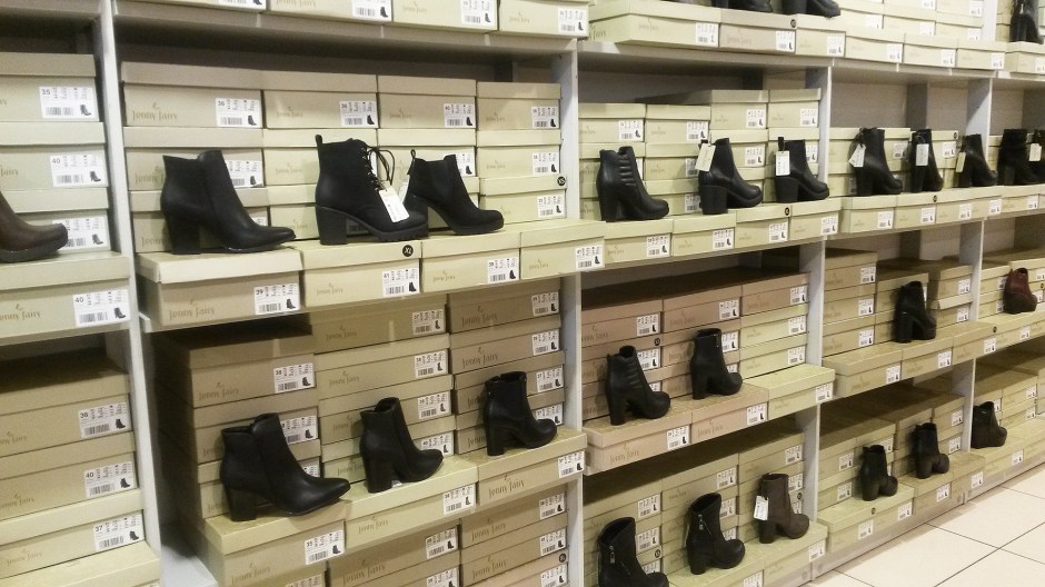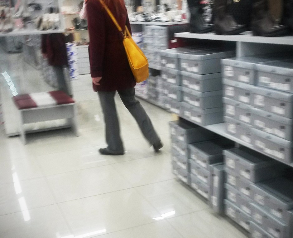 I v prodejně obuvi jsem měla políčeno na jednu pěknou černou dvojici, ale nějak se mi mezi regály děvčata ztratila a místo nich jsem (omylem) vyfotila tohle. Což bylo opravdu nečekané překvapení. Rozhodně to byl jeden z nejbarevnějších výjevů za celý den.