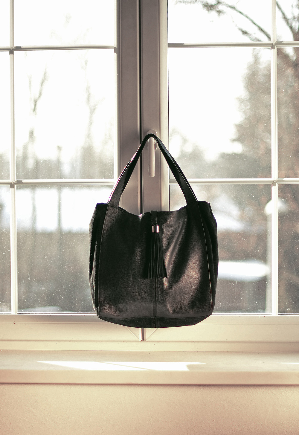 Tak i u černé kabelky by mohlo stát: „Tato kabelka se nejlépe hodí k barevným kabátům, květovaným motivům a k dalším výrazným vzorům“.