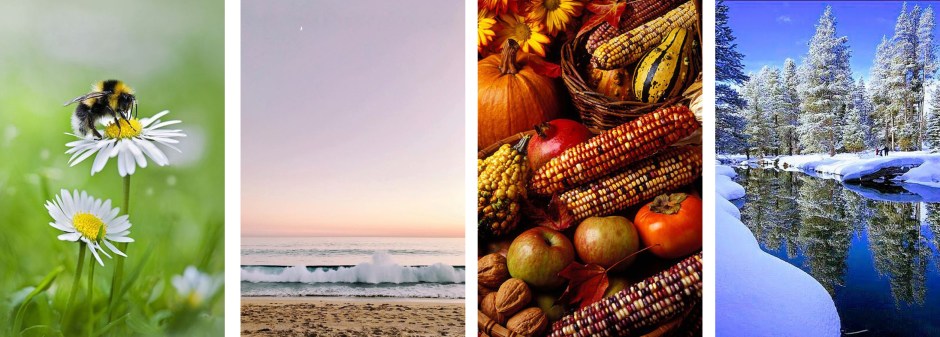 Soustřeďte se chvilku na spojené fotografie teplých odstínů jara a podzimu a stejně tak na chladivé odstíny léta a zimy. Pochopení barev přichází skrze vnímání a cit, ne skrze vzorníky, definice a kategorie!