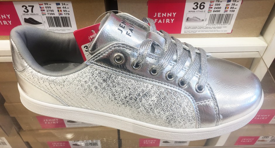 A v ženě nosící třpytivé, flitrové, blýskavé a až takto alobalově stříbrné tenisky, musí být velmi zřetelná kombinace sportovního ducha a lásky k módním trendům. A taky něčeho (promiňte dámy) lacině popového. Neb skutečné, hodnotné kovy a drahé kameny se nikdy (nejste-li královna se Sáby) nevyskytují jen tak na čemkoliv a ve velkých plochách! A ať se nám to líbí nebo ne, vše ostatní vypadá jako pouhá napodobenina, jako něco imitujícího, povrchního a nepravého … Sorry …