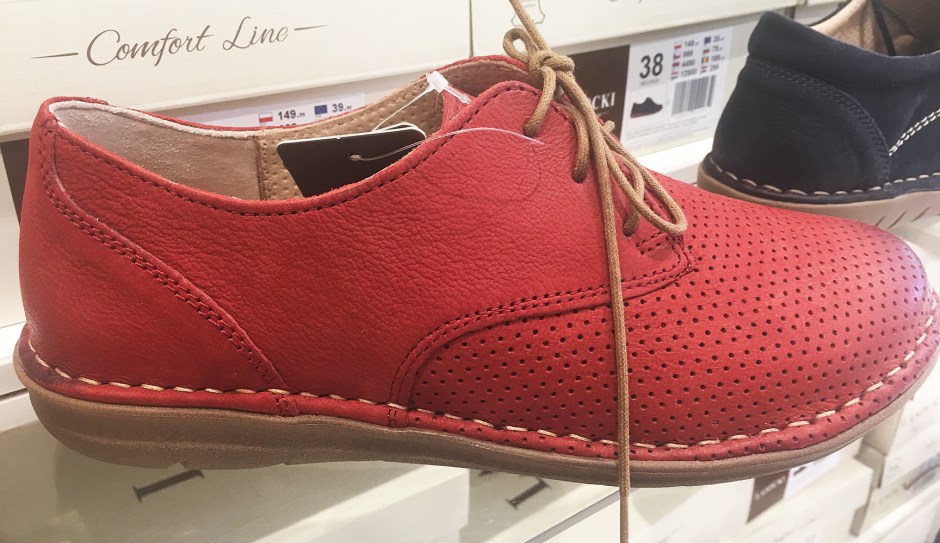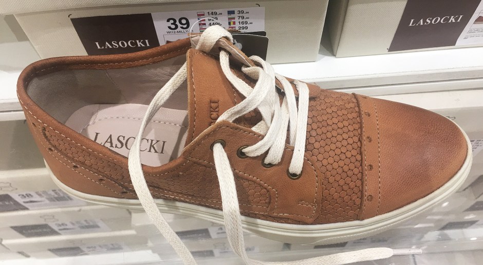 Všechno tohle chápu, ale nesmíme zapomenout, že existuje mnoho druhů volnočasové obuvi, která splní stejně neformální účel jako tenisky, a ve které nebume za á vypadat humpolácky a za bé jako slepě následující trendy. Stačily mi pouhé dvě minuty, abych v prvním běžném obchodě namátkou vyfotila pár takových kousků.
