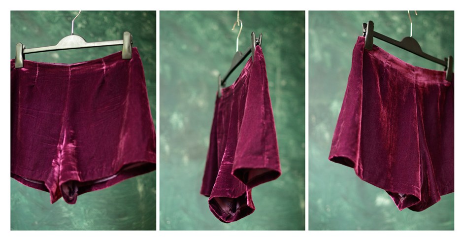 A právě jedním z těch zajímavých úlovků jsou tyhle šortky. Líbí se mi na nich výška do pasu, která zlepšuje proporce ženského těla a prodloužuje nohy, a především pak jejich materiál – samet nachové barvy. Mám totiž ráda, když jsou materiály používány zcela nekonvenčně. Samet je možné tradičně očekávat na společenských šatech, na obleku houslisty, na oponě Národního divadla, ale obvykle se z něj nevyrábějí šortky.
