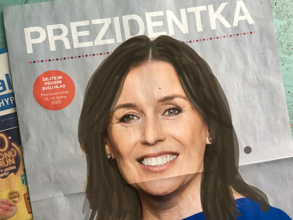 A právě před pár dny, k těmto obvyklým, přibyl ještě jeden, volební, prezidentský paní Danuše Nerudové. Byl to velký formát, přehnutý na půl. Tak ho otevírám, rozkládám a prohlížím … A jak jsme všichni ovlivněni svou prací, tak i mně, tím, že pracuji se vzhledem a stylem žen, okamžitě padne zrak na její vlasy, respektive na její tmavé odrosty … a nesrovnalost je na světě, něco je jinak … Ejhle, falešná blondýna. A já se sama sebe ptám: „Chtěla bych za prezidentku falešnou blondýnu?“