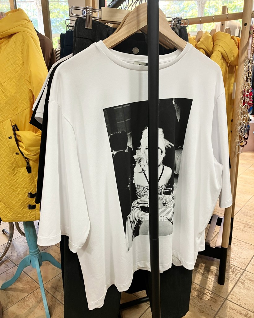A protože jsem až příliš často slyšela samu sebe svým klientkám říkat: „Slušelo by ti tričko. K tomu by se ti hodilo tričko. Odlehči to tričkem. Úplně na tobě vidím takový malý potisk růžových kytiček …“ rozhodla jsem se ke svým návrhům a tričkům vrátit a znovu je zařadit do své stálé prodejní nabídky. Zohlednila jsem v nich všechno, co jsem se ve své praxi naučila a vypozorovala – a na základě toho sestavila: